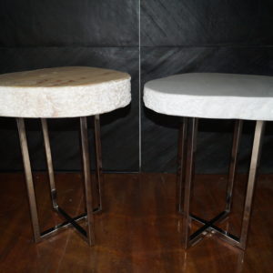 Beistelltisch aus Marmor mit einem Untergestell aus poliertem rostfreien Stahl.