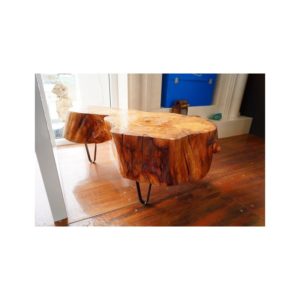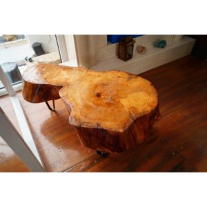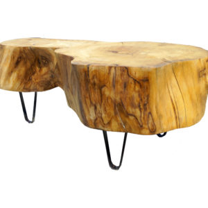 Couchtisch, Kaffeetisch aus Ulmenholz mit schwarzem Untergestell aus Stahl..