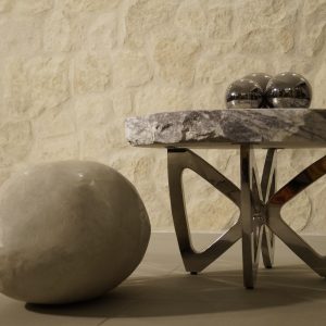 Couchtisch, Kaffeetisch aus Marmor mit einem Untergestell aus Chromstahl