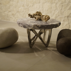 Runder Tischblatt mit bearbeiteter Kante hergestellt aus Marmor „Dark Purple Wave“