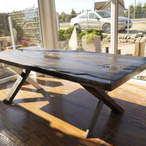 Tischblatt aus Mooreiche bearbeitet mit Harz