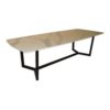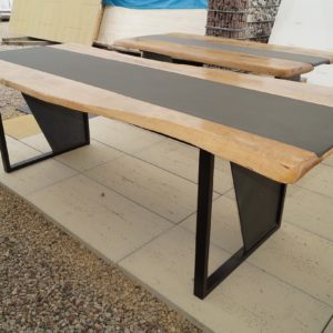 Tisch aus Birkenholz verbunden mit Keramik „Calce Nero“ und einem schwarzen Untergestell aus Stahl.