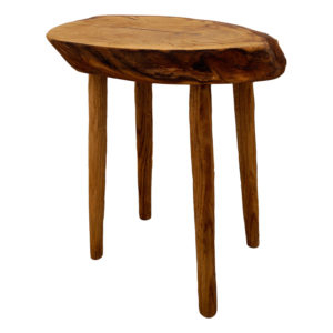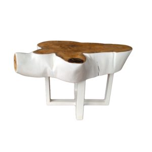 Couchtisch, Kaffeetisch aus Ulmenholz mit einem weißen Untergestell aus Stahl.