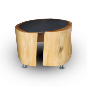 Couchtisch, Kaffeetisch aus Pappelholz verbunden mit einem Tischblatt aus Keramik „Calce Nero”